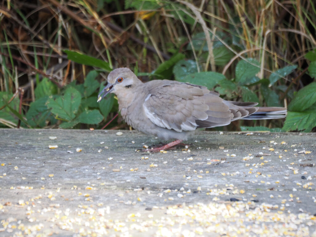 White-winged Dove with not one, but two pieces of cracked corn in its bill. Photo by Clay Bliznick.