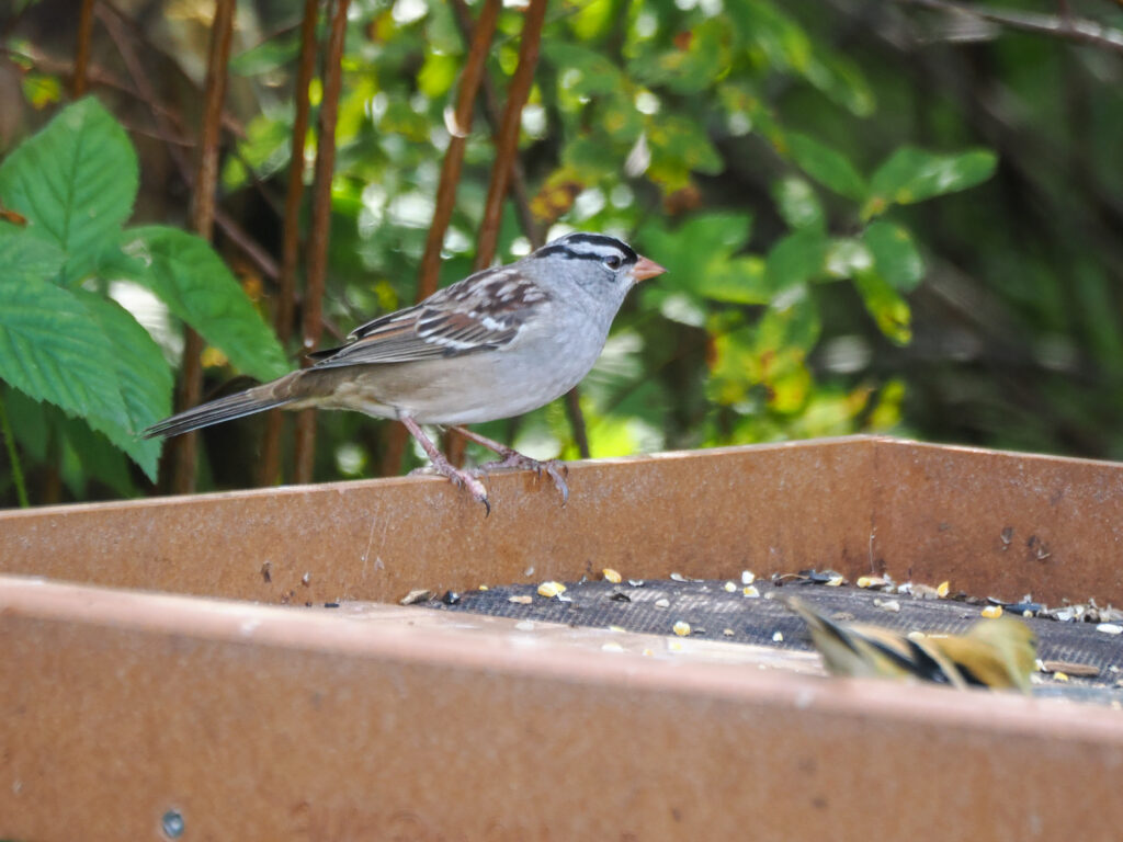 We’ve been getting an adult White-crowned Sparrow stopping by the feeders every now and then. Photo by Clay Bliznick.