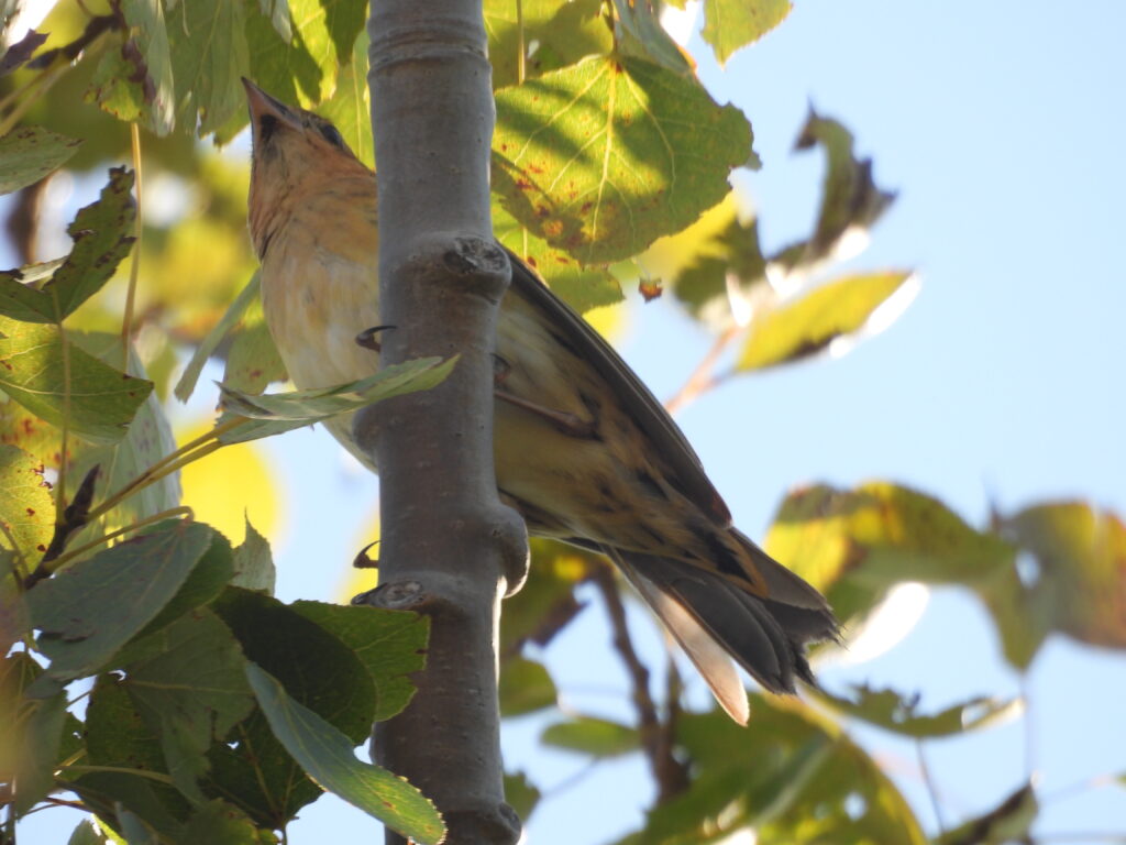 So far this season, east winds have produced the biggest Canada Goose flights for us. We’re getting later into the fall, and a few non-Canada Geese have started mixing in. Clay had a Cackling Goose mixed into a flyover flock on 9/28, and I had a single Snow Goose in a different flyby flock on 9/27. There were also two swans observed flying by on 9/30 that were too far to confirm Trumpeter or Tundra.